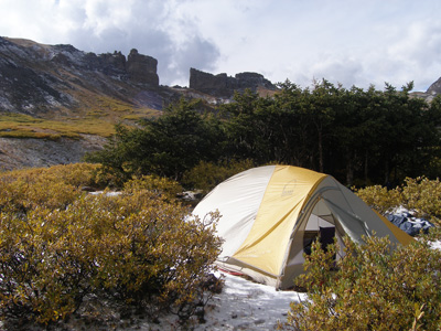 About 5:30, we decided that there was enough of a break to cook dinner. Dinner was some chipolte rice with dried ham, which was not too bad. Diane and Tim graciously shared some of their remaining wine with us. It added a nice touch to an otherwise yucky day. We retreated to the tents pretty early, like 7 pm. I looked out again, right before dark, and it seemed like there was a bit of blue sky. Sucker hole, or impending good weather? Only another night in the tent would tell us. At least we were warm and dry. Clean? Well, maybe a little.
