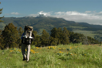 In one of the many meadows along the trail, we stopped for rest break near where some very tall irises were blooming. They reminded me of the irises my mother used to grow back in Michigan, because they looked so formal. We joked that - as my former spouse would say - they reminded us of the Crested Dwarf Irises in the Smokies, because they were so different. Shortly, the trail pitched over, and makes a sharp descent to the sage brush covered shelf on the south side of the Yellowstone, perhaps a couple of miles east of the main Park Entrance. As we covered the distance to the Entrance Station (via a bridge crossing of the raging-with-snowmelt Gardner River) in hurried fashion, we turned around for one last look at the Yellowstone River coming out of its Black Canyon. We caught sight of a bald eagle soaring on the thermals, presumably looking for an early lunch. Yeah, it had been a pretty good hike for The First One.